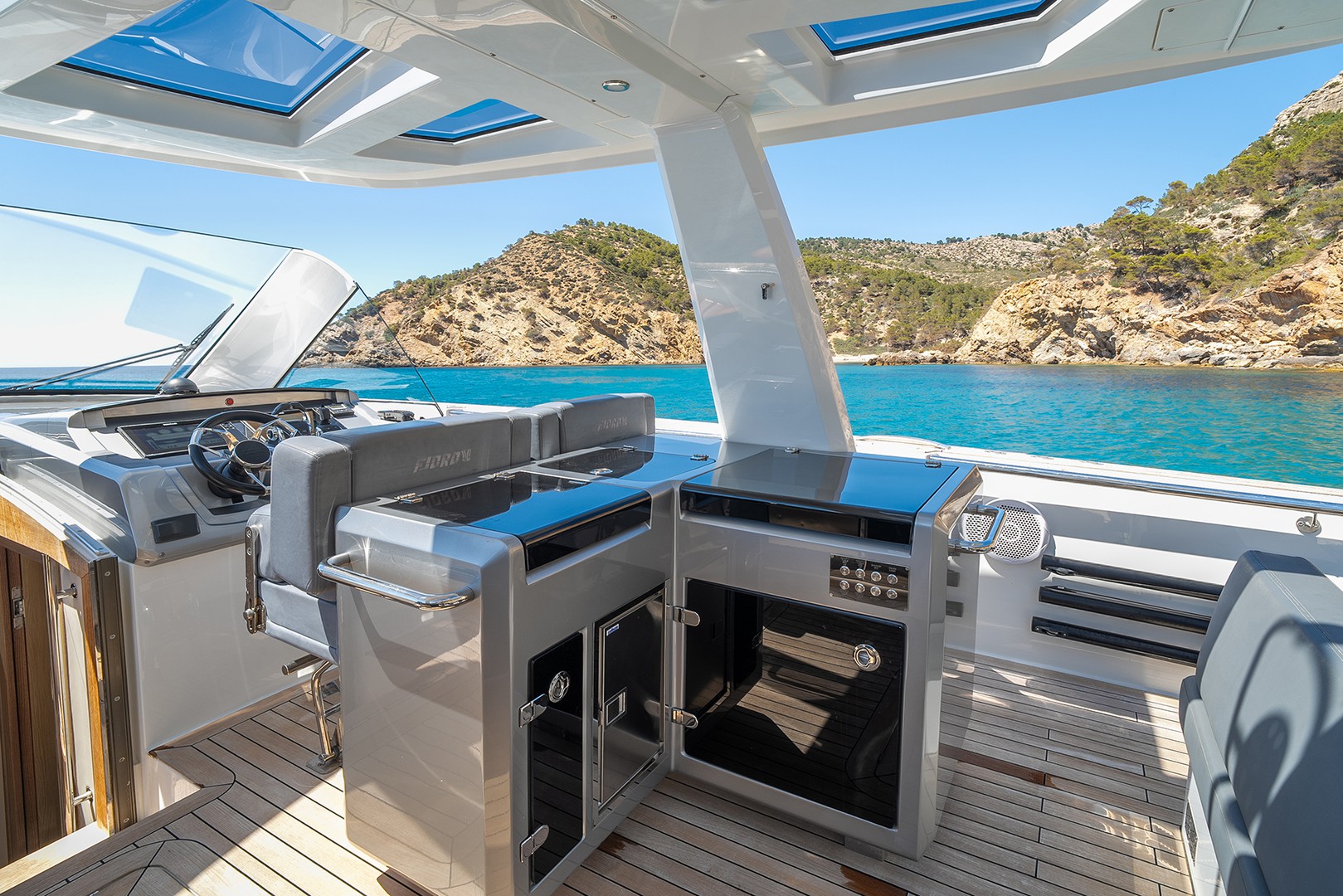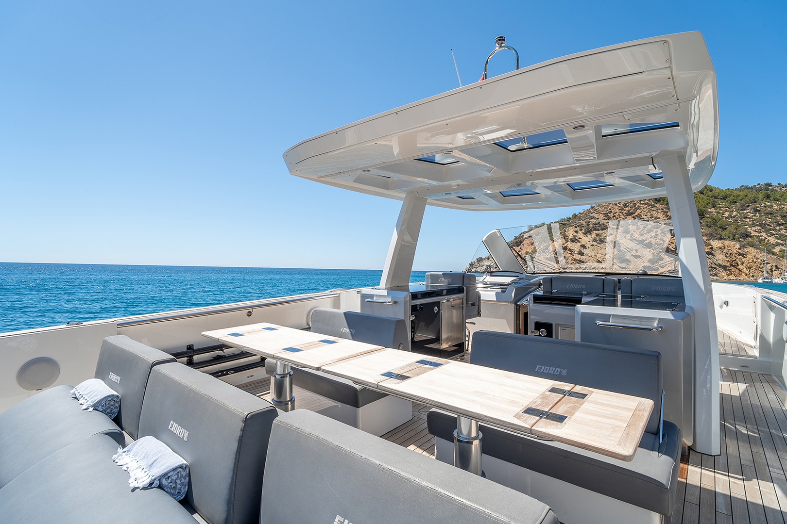 The Fjord 52 Open blends 1600 HP of pure excitement with the safety of Fjord’s signature walkaround deck. Bold on the outside and reinvented on the inside, this yacht offers an unmatched sailing experience. From materials to every refined detail, it’s built for those who demand the very best at sea—with no compromises.
