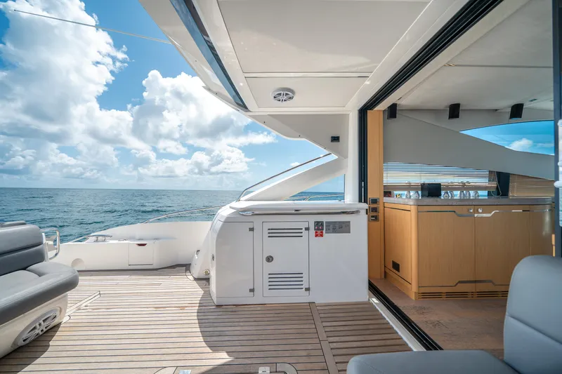 Measuring nearly 22 meters in length, the Sunseeker 68 provides expansive outdoor and indoor spaces. Its versatile flybridge, large forward sunpad, and spacious swim platform create ideal areas for relaxation, entertainment, and seamless connection with the sea.